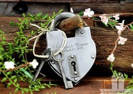 There are several ways the ceremony can be done. The couple can use a pair of heart locks that they padlock together on a single chain or, the couple can use a single lock and secure it to a permanent structure. (I personally like the heart locks on a chain/ribbon can be anything you want as the couple can keep it as a memento of their wedding day).