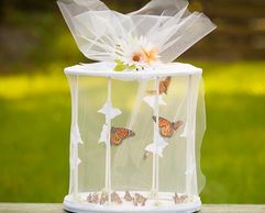You also have the option of having each of your butterflies enclosed in a beautifully decorated release box or display cage. These containers also make a unique addition to your wedding day decorations. Just imagine, as you walk down the aisle you are greeted by live, beautiful butterflies in their release cages.